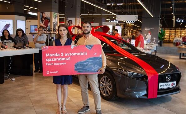 “Kontakt” mağazalar şəbəkəsinin elan etdiyi kampaniyada dördüncü avtomobilin şanslı sahibi Bakı şəhəri sakini, 28 yaşlı Babayev Emin Elçin oğlu olub. Bu yaxınlarda toyu olacaq Emin Babayev gələcək həyat yoldaşı ilə birlikdə “Kontakt Home – Ukrayna Dairəsi” mağazasına cehiz əşyalar almağa gəlib, Panasonic ətçəkəni əldə edib və “Şeş-Qoşa” kampaniyasında bəxtini sınayaraq son model Mazda 3 avtomobiliniaparıb. Bu avtomobili ona əsl toy hədiyyəsi də hesab etmək olar. Qalib öz təəssüratlarını belə bölüşüb: