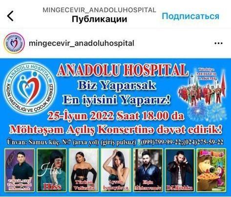 Axar.az Azpolitika.info-ya istinadən xəbər verir ki, “Anadolu klinikası” adlandırılan “Qadın və uşaq xəstəlikləri mərkəzi”nin artıq açılışı keçirilsə də, lisenziyası olmadığından fəaliyyət göstərmir.