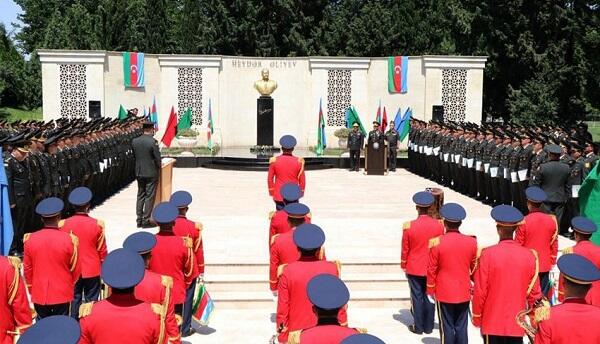 Müdafiə nazirinin müavini - Quru Qoşunları komandanı general-leytenant Ənvər Əfəndiyev şəxsi heyəti salamladıqdan və bu əlamətdar hadisə münasibətilə Müdafiə Nazirliyinin rəhbərliyi adından təbrik etdikdən sonra Ulu Öndərin abidəsi ziyarət olunub, önünə qızılgüllər düzülüb.