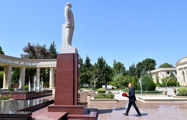 Axar.az xəbər verir ki, dövlətimizin başçısı abidənin önünə gül dəstəsi qoyub.