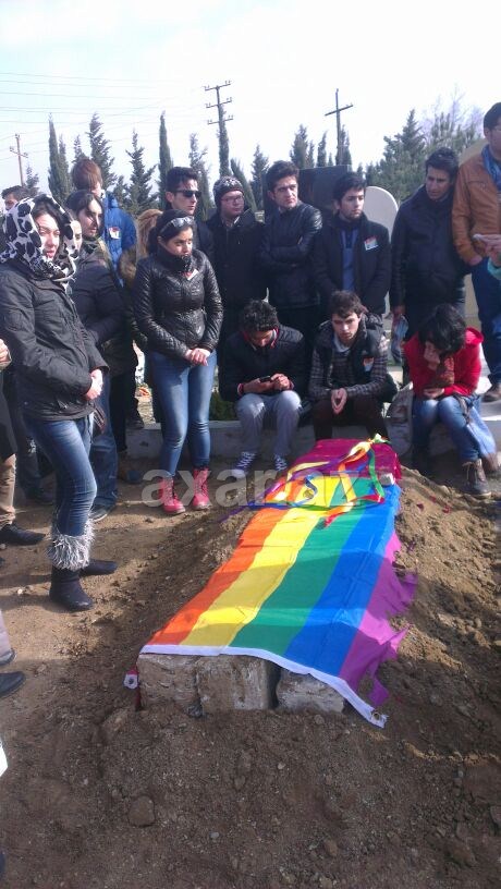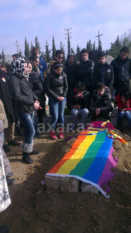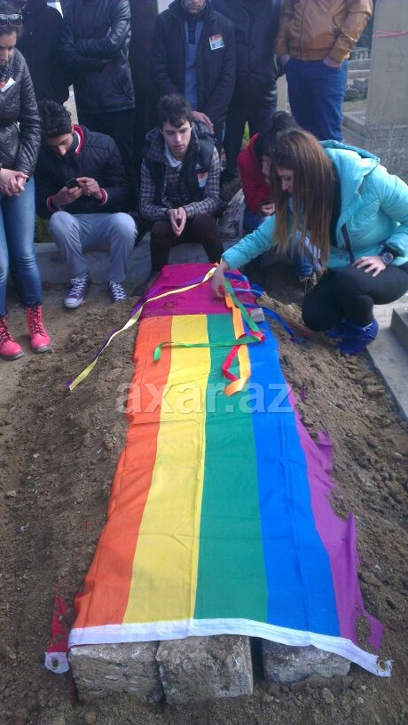 Onlar İ.Şahmarlının qəbrinin üstünə LGTB-nin bayrağını səriblər.