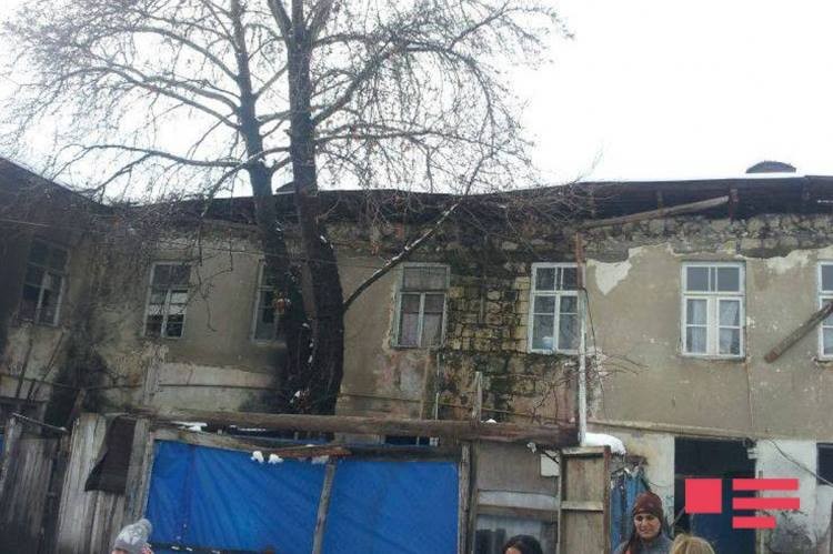 vurub. Qəzalı vəziyyətdə olan yaşayış binasının dam örtüyü və