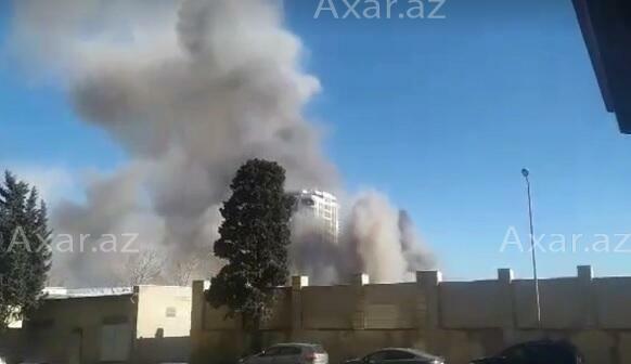 Partlayışın ardınca ərazidən qatı tüstü qalxıb.