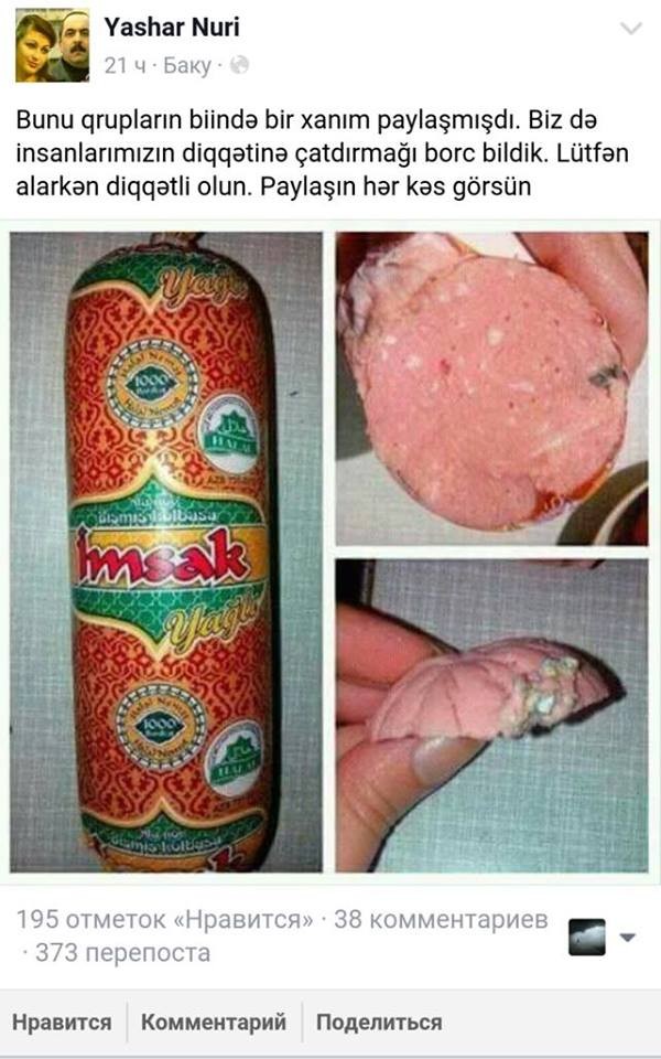Axar.az-ın xəbərinə görə, Yaşar Nuri adlı Feysbuk səhifəsində həmin məhsulun şəkli yayımlanıb.