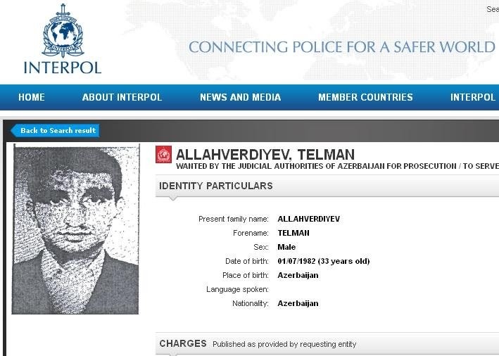APA-nın məlumatına görə, 1982-ci il təvəllüdlü Telman Allahverdiyev yol hərəkəti qaydalarını pozmaqda təqsirləndirilir. O, ölkədən qaçdığı üçün barəsində dövlətlərarası axtarış elan olunub və saxlanılması üçün İnterpola müraciət edilib.
