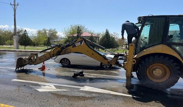 Naxçıvan şəhərində magistral su xəttində qəza baş verib.
