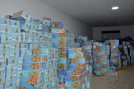 "kişmiş" yüklü karton qutuların arasında yük yerinin orta