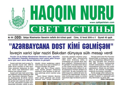Qafqaz Müsəlmanları İdarəsinin həftəlik nəşr edilən "Haqqın nuru" qəzeti fəaliyyətini dayandırıb.