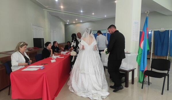 Axar.az xəbər verir ki, yeni ailə quran cütlük bəy və gəlin paltarında 89 saylı İsmayıllı seçki dairəsinin 3 saylı məntəqəsinə gələrək səsvermə hüququndan istifadə ediblər.