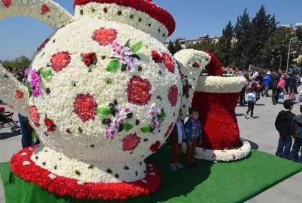 Hazırda Heydər Əliyev Sarayının qarşısında Gül Bayramı ilə bağlı hazırlıq işləri dayandırılıb.