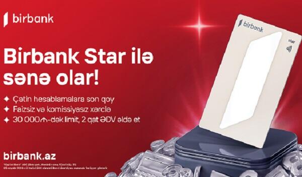Ölkənin ilk rəqəmsal bankı Birbank maliyyə bazarına hərəkət gətirəcək yeni Birbank Star kartını təqdim edir. “Birbank Star ilə sənə olar” sloqanı ilə istifadəyə verilən kart, kredit kartlarının sahib olduğu ənənəvi şərtlərdən tamamilə uzaqdır. Belə ki, Birbank Star sahibinə maliyyə azadlığı ilə yanaşı, çətin və qarışıq qrafiklər, mürəkkəb kredit hesablamalarından uzaq olmağı vəd edir.