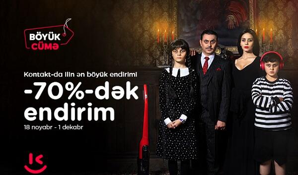 Gözlənən o xəbər “Kontakt”dan gəldi! Şəbəkə Böyük Cüməyə özəl ilin ən böyük endirim kampaniyasına start verib. Bu böyük kampaniya ilə “endirim olsun, alaram” dediyiniz həmin o məhsulları artıq yüksək endirimlə - nağd alışda 70%-dək endirimlə əldə edə bilərsiniz. Üstəlik, bu fürsət həm şəbəkənin mağazalarında, həm də kontakt.az saytında keçərlidir.