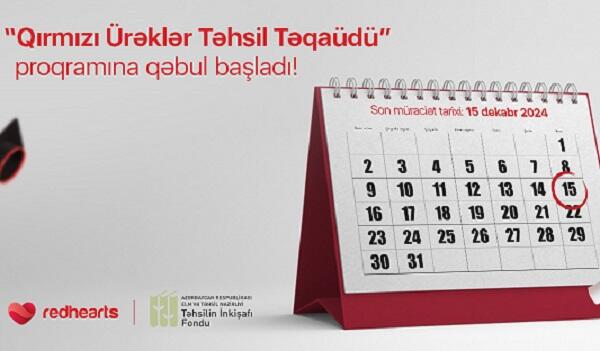 Təhsilin İnkişafı Fondu və Qırmızı Ürəklər Fondunun birgə əməkdaşlığı çərçivəsində həyata keçirilən “Qırmızı Ürəklər Təhsil Təqaüd Proqramı”na start verilib. Layihənin məqsədi yüksək bal toplayaraq ali məktəblərə daxil olan, sosial baxımdan həssas əhali qrupuna aid edilən ailələrin üzvü olan tələbələrə dəstək olmaqdır.