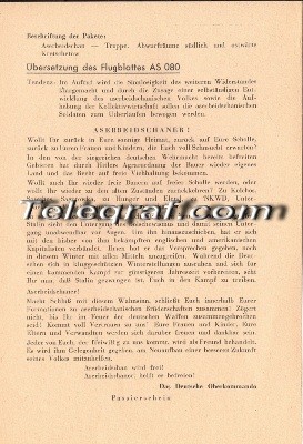 "Bu vəsiqə Qızıl Ordunun çoxlu miqdarda döyüşçü, komandir və siyasi işçilərinə məxsus olmaqla, müharibənin sonuna qədər etibarlıdır. Hitlerin yeni əmri üzrə bizim tərəfimizə könüllü keçənlərlə biz xüsusi olaraq yaxşı rəftar edirik.