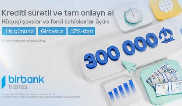 Artıq hüquqi şəxslər və fərdi sahibkarlar cəmi bir iş günü ərzində girovsuz və tamamilə onlayn şəkildə 300 000 AZN-dək məbləğdə kredit əldə edə bilərlər. Qeyd edək ki, kredit 24 ayadək müddətə və illik 12%-dən başlayan sərfəli şərtlərlə sahibkarlara təqdim olunur.