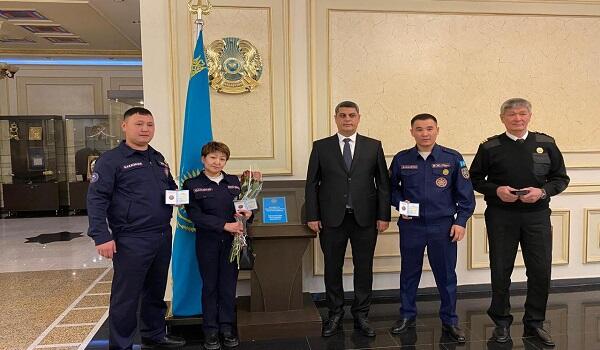 Sonra baş konsul qəzaya uğramış təyyarənin sərnişinlərinin xilas edilməsi zamanı cəsarət, peşəkarlıq nümayiş etdirmiş Qazaxıstan FHN-in əməkdaşlarına döş nişanlarını təqdim edib, onları təbrik edib və xatirə şəkili çəkdirib.