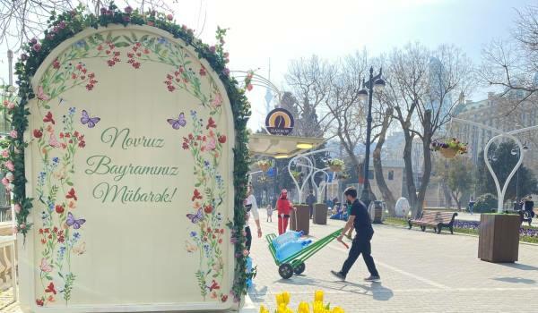 Bu dəfə bayram tərtibatı ənənəvi məkanda deyil, fərqli istiqamətdə, lalələrin xüsusi kompazisiya ilə əkildiyi yerə yaxın gəzinti zolağında qurulub. Azneft dairəsindən Qız qalasına qədər olan hissə Novruz atributları ilə zənginləşdirilib. Burada bayramın rəmzi olan səməni, dörd çərşənbəni simvolizə edən gəlinciklər, milli ornamentlərlə bəzədilmiş dekorativ kompozisiyalar, rəngarəng güllər, işıq instalasiyaları, şirniyyat elementləri və digər Novruz simvolları quraşdırılıb