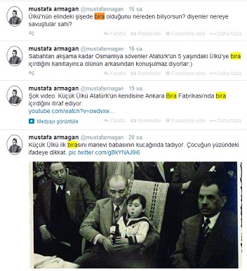 "Axar.az" xəbər verir ki, Ərməğan tvitterdə paylaşdığı videoda Atatürkün 2012-ci ildə avtomobil qəzasında vəfat edən mənəvi qızı Ülkü Adatəpənin illər əvvəl "TRT"yə verdiyi müsahibənin görüntüləri var. Hamının gözündən qaçan bu müsahibədə Ülkü Adatəpə bir etiraf edib: