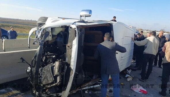 Məlumata görə, mikroavtobusla VAZ markalı avtomobilin toqquşması nəticəsində ən azı 5 nəfər xəsarət alıb.