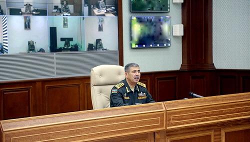 Müşavirədə Azərbaycan-Ermənistan şərti sərhədində mövcud əməliyyat şəraiti, o cümlədən son günlər qarşı tərəfin bölmələrimizi mütəmadi olaraq atəşə tutması, mövqelərimiz üzərində pilotsuz uçuş aparatları və dronlarla kəşfiyyat xarakterli uçuşlar həyata keçirmə cəhdləri geniş müzakirə edilib. Nazir Azərbaycan Ordusu bölmələrinin hər an istənilən təxribata qarşı çevik reaksiya verməyə hazır olması barədə aidiyyəti vəzifəli şəxslər qarşısında konkret tapşırıqlar qoyub, döyüş növbətçiliyinin təşkili zamanı ayıq-sayıqlığın artırılmasının vacibliyini vurğulayıb.