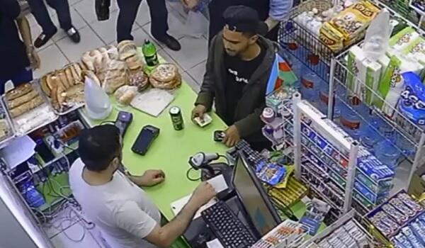 Kadrlardan aydın görünür ki, əcnəbilərdən biri mağazaya daxil olduqdan sonra qapının yaxınlığında dayanaraq kassirin diqqətini yayındırır. Digəri isə bir ədəd içki götürərək kassaya yaxınlaşır və 50 manat pulu kassirə təqdim edir. Kassir pulun qalığını təqdim etdikdən sonra alıcı içkidən imtina etdiyini bildirir və pulunu geri istəyir. Kassir bu zaman alıcının verdiyi pulu ona qaytarır. Əcnəbi hiyləgər üsulla həmin pulu əlindəki pulqabının arxasında gizlədir, kassirə bu dəfə iki içki istədiyini bildirir. Bu yolla o, həm geri qaytarılmış pulu, həm də yeni alışa görə verilən qalığı alaraq mağazanı tərk edir.