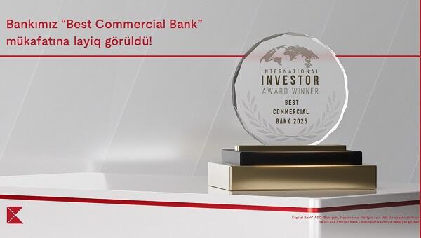 “Kapital Bank” kommersiya bankçılığı sahəsindəki uğurları və innovativ yanaşması ilə daha bir beynəlxalq mükafata layiq görülüb. Bank, nüfuzlu “International Investor” jurnalı tərəfindən “Ən yaxşı kommersiya bankı 2025” (“Best Commercial Bank Azerbaijan 2025”) nominasiyası üzrə qalib elan edilib. Bu mükafat Kapital Bank-ın kommersiya bankçılığı sahəsində göstərdiyi yüksək performansın, müştəri yönümlü yanaşmanın və dayanıqlı böyümənin beynəlxalq səviyyədə növbəti təsdiqidir.