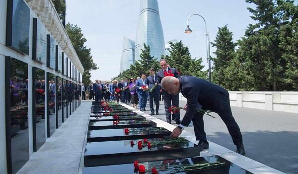 Daha sonra Şəhidlər Xiyabanında Azərbaycanın müstəqilliyi və ərazi bütövlüyü uğrunda canlarından keçmiş qəhrəman Vətən övladlarının xatirəsi yad edilib.