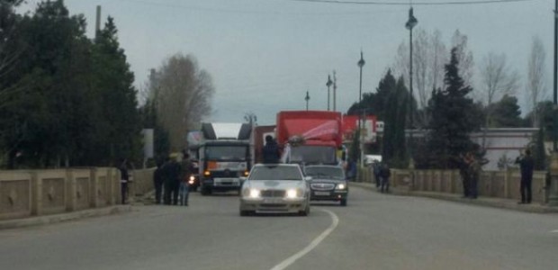 sürpriz edib. Gəlini gətirməyə yük maşınlarından ibarət karvanla